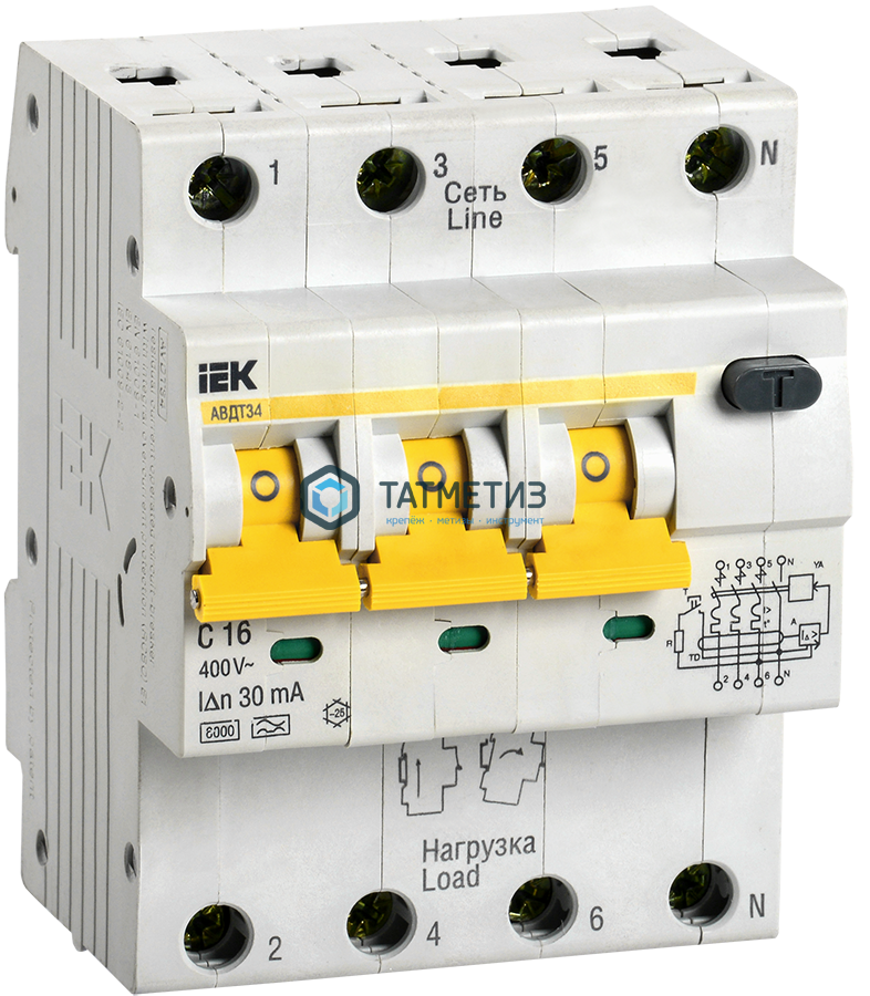 Выключатель авт.дифференциального тока 4п C 16А 30мА тип A 6кА АВДТ-34 (3P+N) IEK